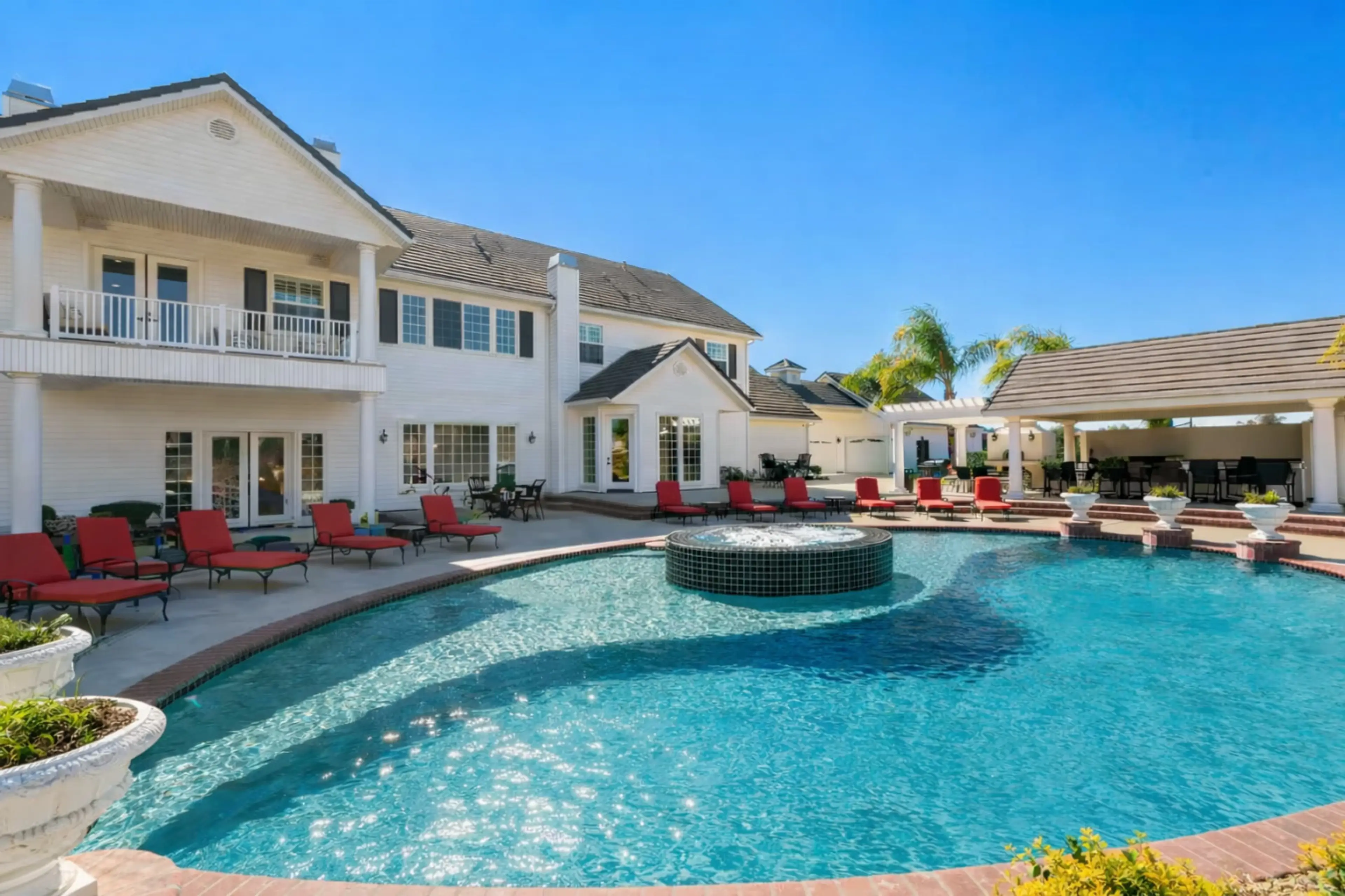 You are invited to be our guest at the "Luxurious Private Vineyard Estate in Temecula Valley”. Come and enjoy one of the largest most accommodating properties in Temecula Valley. Situated on 5 acres, this 8 bedroom 6.5 bath vineyard estate can accommodate your group with ease. Bordered with a pict...